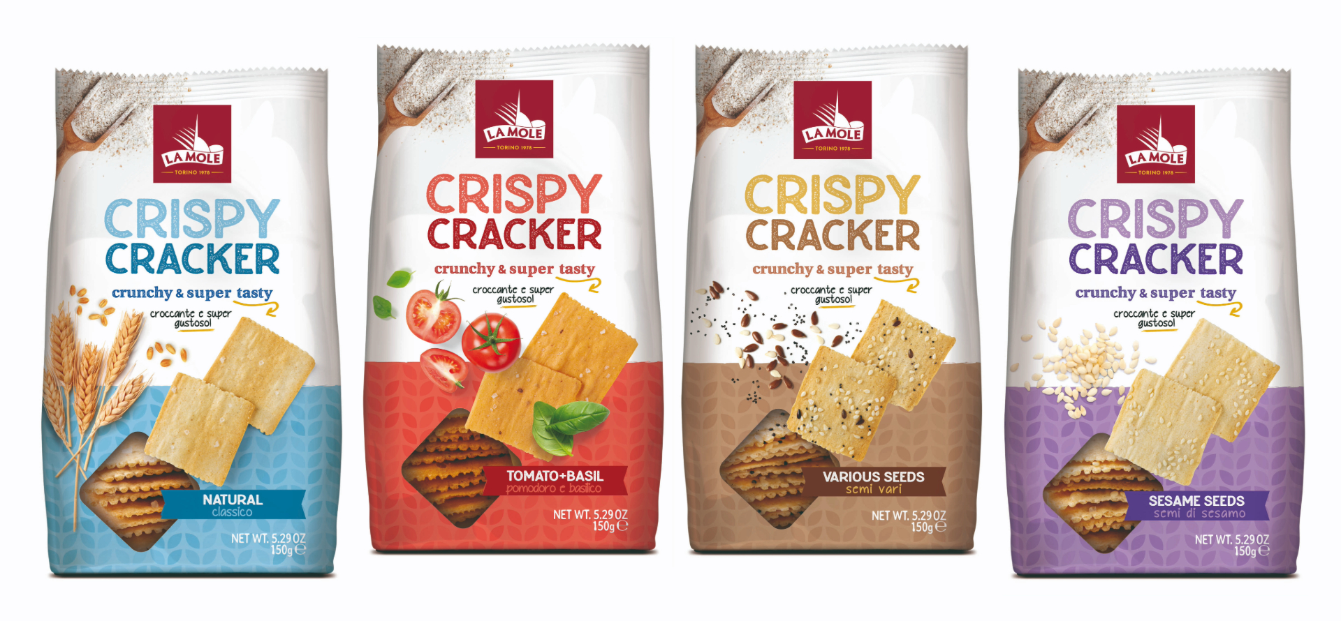 Our flavors are: natural, tomato and oregano, various seeds and sesame.